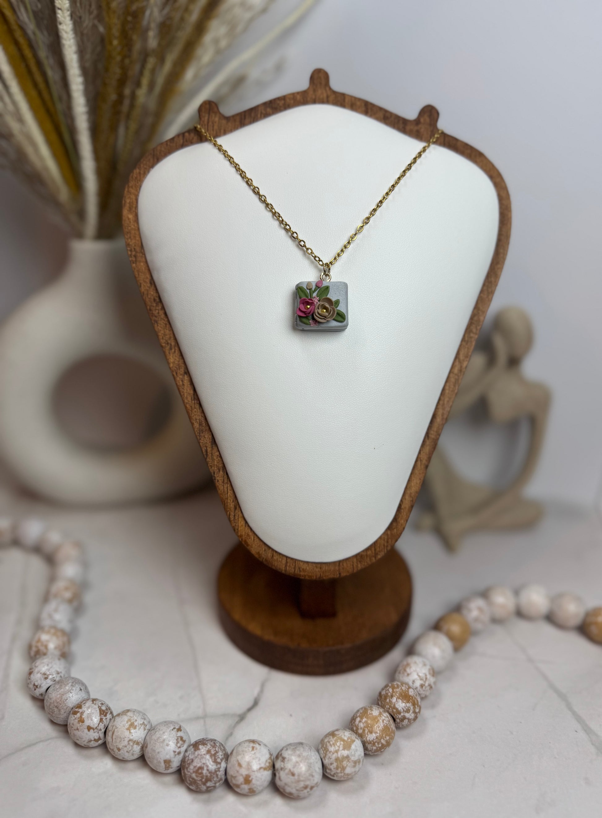All Pibble Clay Creations necklaces are one of a kind! Each piece is created using high quality polymer clay and 18-inch gold or silver plated stainless steel necklace chains. Our simple but elegant statement necklaces are all lightweight and perfect for casual everyday wear or can be dressed up for any special event!
