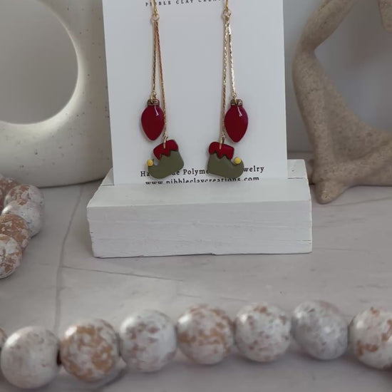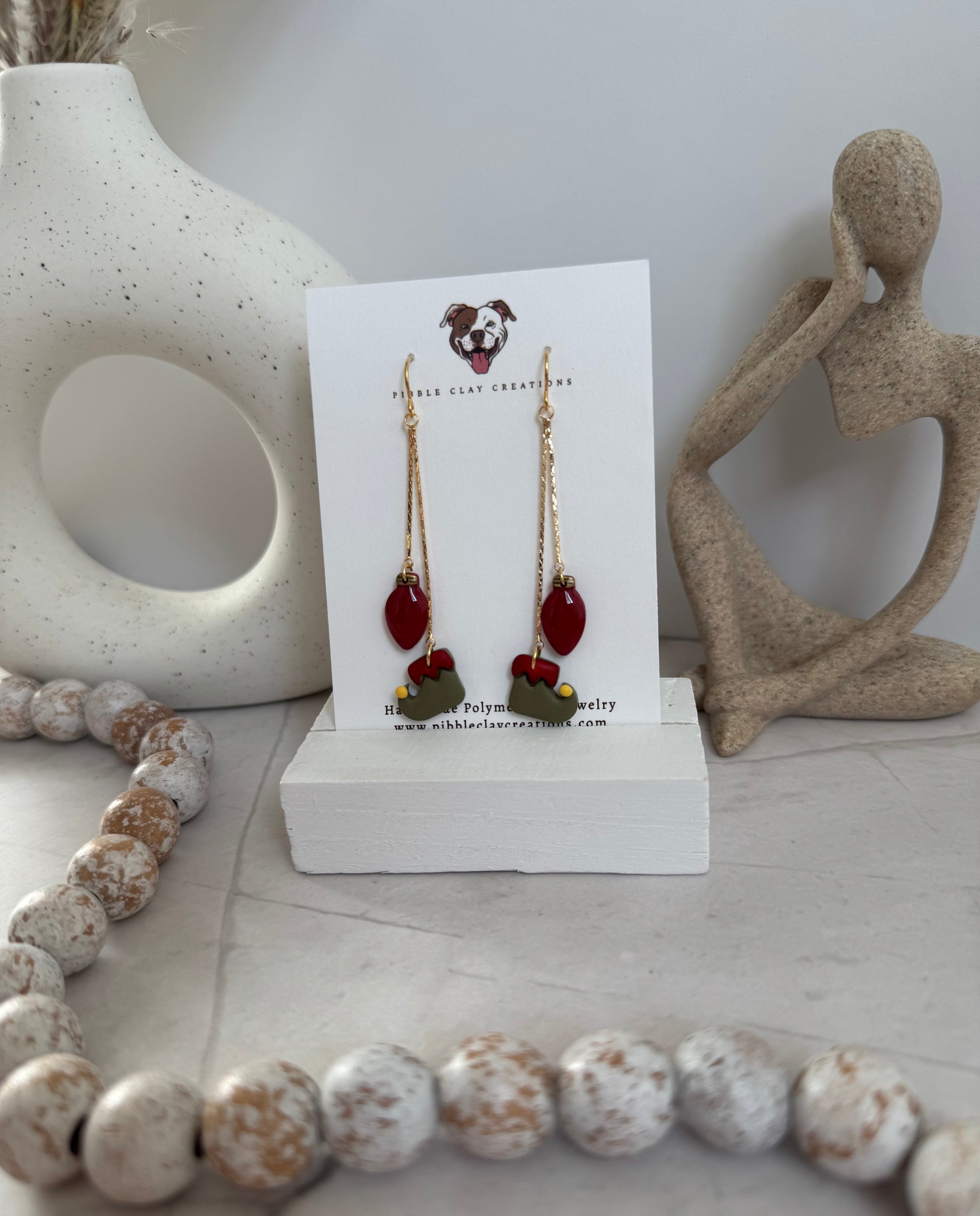 Christmas light bulb and elf shoes inspired polymer clay earrings. Lightweight.