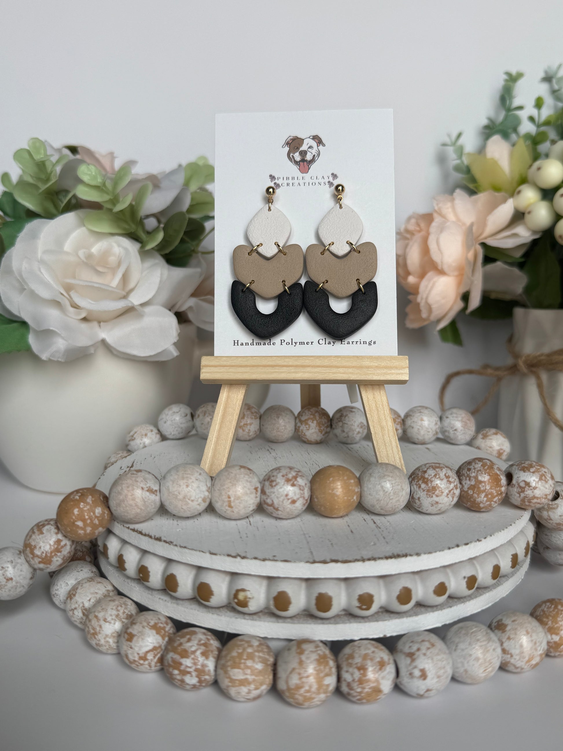 All Pibble Clay Creations earrings are one of a kind! Each piece is created using high quality polymer clay and high quality earring findings. All of our earrings come with silicone backs. Please note that all earrings are handmade and variations may occur.